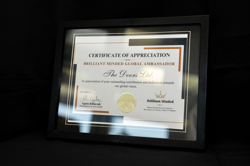 Awarded to The Doors Ltd. for dedication and contribution toward a global vision of innovation and empowerment.